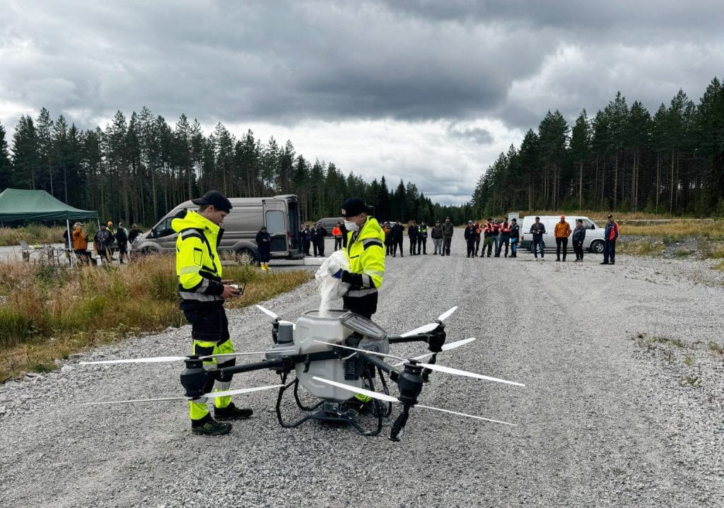 Toteutamme boorilannoituksia vuodesta 2025 lähtien myös dronelevityksinä. Kuva Kinnulan työnäytöksestä.